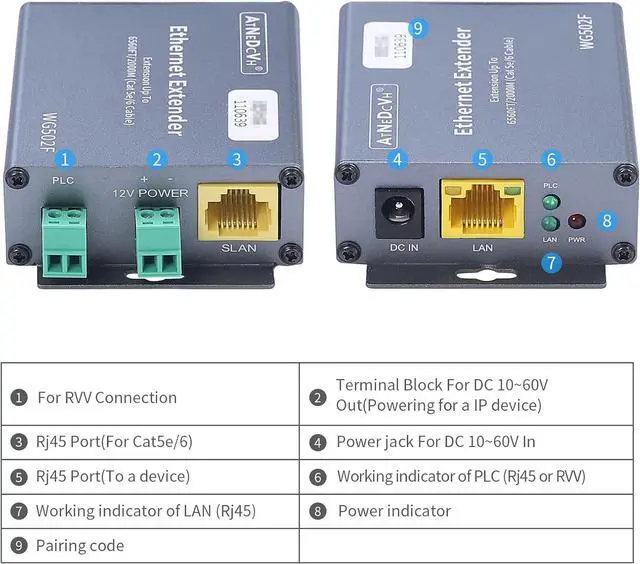 Whats in the box: WG502F Ethernet Extender * 1 pair (transmitter&receiver), DC 12V power adapter * 2pcs, User guide * 1pcs