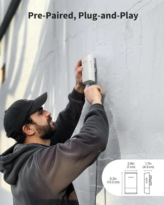 Plug-and-Play: This point to point wireless bridge is pre-paired for instant setup out of the box. Simply power the AP (Transmitter) and Station (Receiver) in the same room for automatic pairing in minutes. Supports power supply via included Passive PoE or DC power adapter