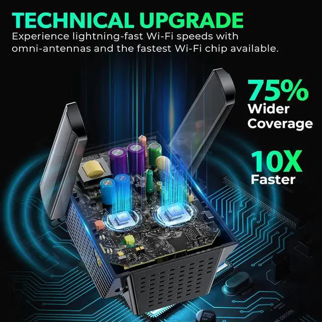 AX3000 Gigabit WiFi 6 Booster: Dual-band wireless extender with speeds up to 3000Mbps, about 35% faster than WiFi 5, for a smooth, low-latency network experience, whether you're streaming 4K/HD, streaming live games, or playing games