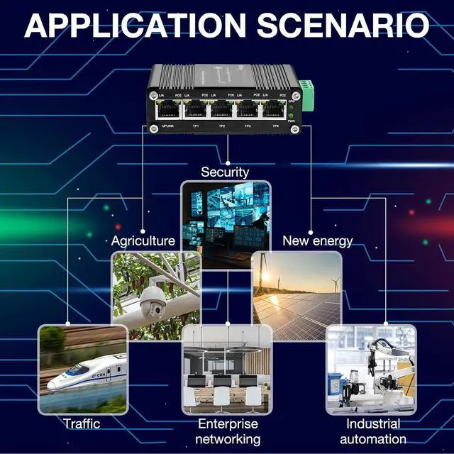 : 5 port industrial gigabit PoE switch is suitable for computer room, outdoor, warehouse, factory, RV/vehicle/truck/bus,VoIP/access control systems