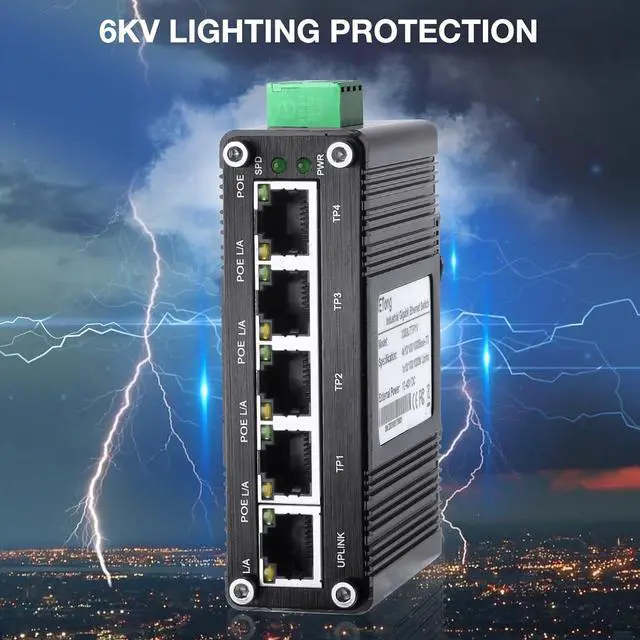 : The industrial ethernet switch has 6 KV lightning protectin, anti-static, anti-electromagnetic interference, surge protection