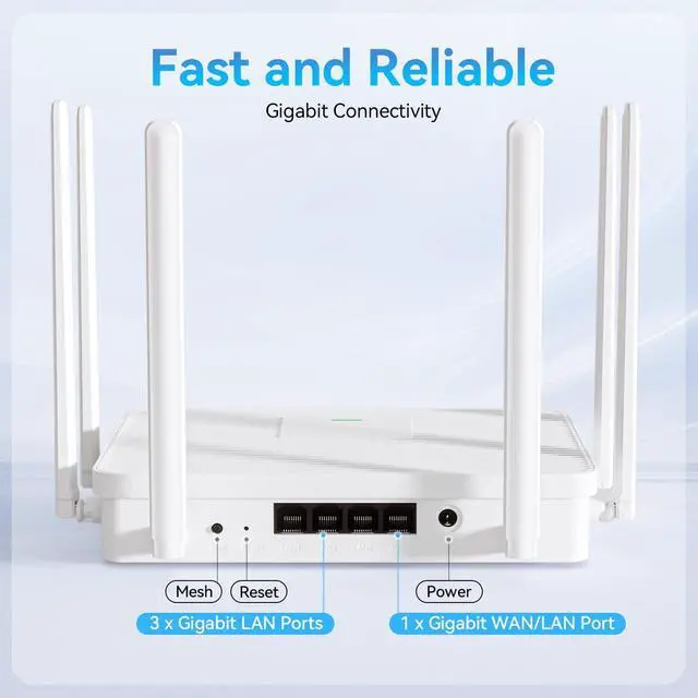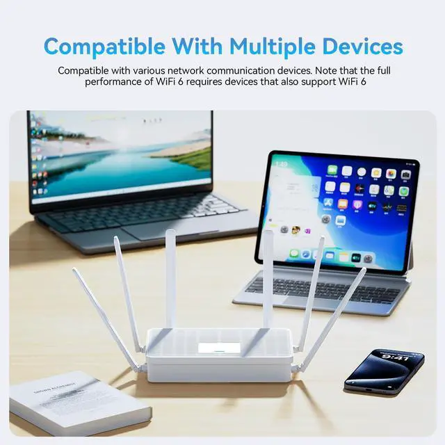Next-Gen Wi-Fi 6 Performance with 6 High-Gain AntennasExperience AX3000 speeds up to 3Gbpsperfect for lag-free 4K streaming, competitive gaming, and seamless video conferencing. Dual-band technology intelligently optimizes connections for 40+ devices simultaneously.