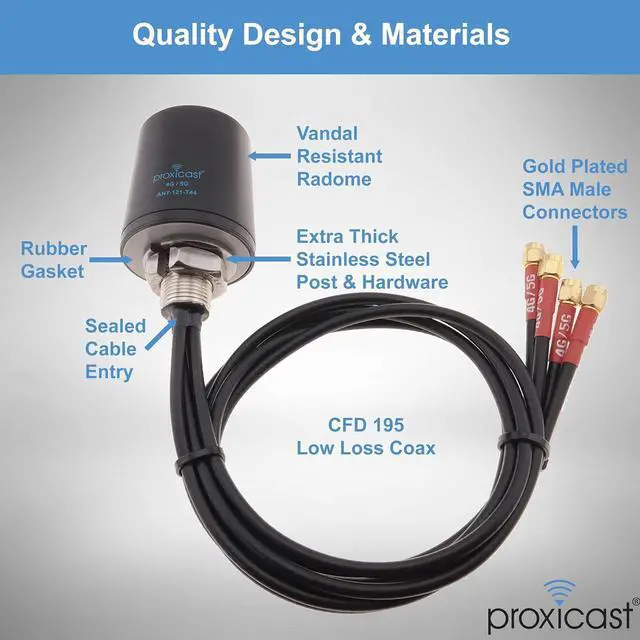 4 IDENTICAL ISOLATED OMNIDIRECTIONAL ANTENNA ELEMENTS: Covers all Sub-6 (FR1) 4G & 5G Wireless Frequency Bands (600-6000 MHz) -- Connect any lead to any cellular antenna port on your device