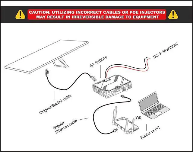 Flexible Device Connections: With a plug-and-play design and a single LAN output, the 12V Starlink conversion kit provides flexibility for connecting your computer, router, and other devices. It enhances your Starlink internet experience by seamlessly integrating your entire network setup with the Starlink internet kit satellite.
