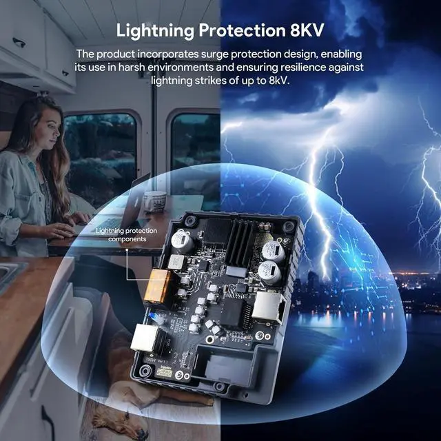 Durable Protection and Environmental Adaptability: The 150W Starlink 12V PoE offers excellent surge and ESD protection, operates efficiently in temperatures from -20 to +55°C, and remains stable in humid conditions (10% - 90% non-condensing). Its efficient storage capabilities ensure long-term reliability and durability.