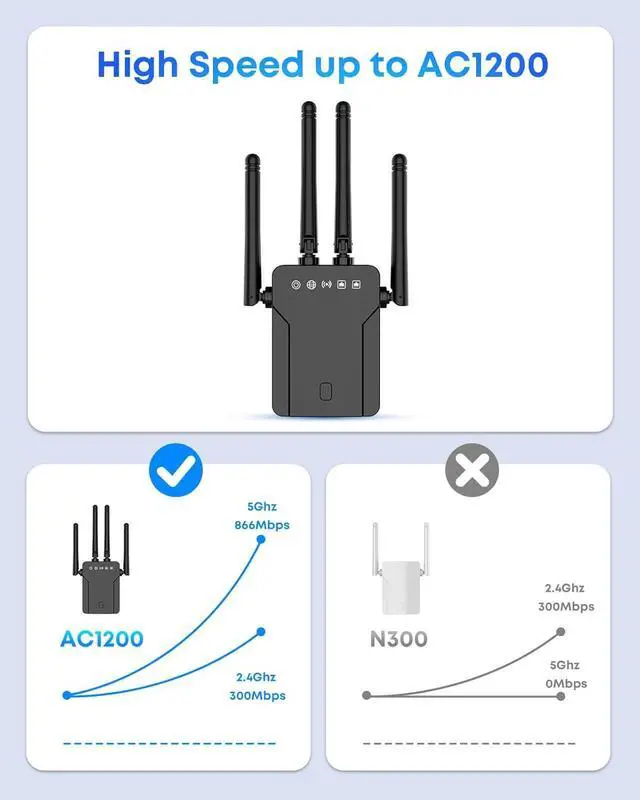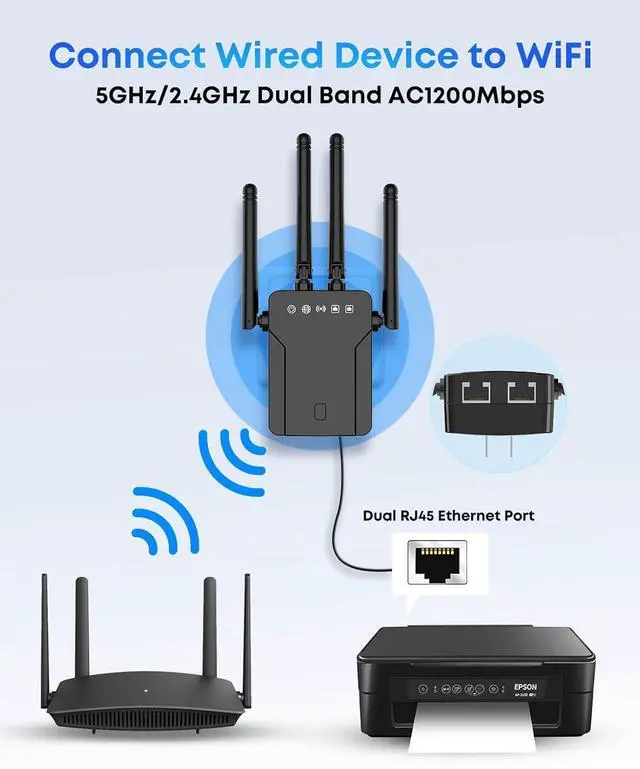 Upgrade Your Wired Devices To WiFi AC1200 High Speed By Using this Dual Band wifi to ethernet, Make your Ethernet-enabled Devices Connect the Internet via Wireless Connection. 867Mbps on 5Ghz and 300Mbps on 2.4Ghz - The 5GHz Universal WiFi to ethernet bridge works with Any 802.11ax/ac/a/b/g/n WiFi Routers