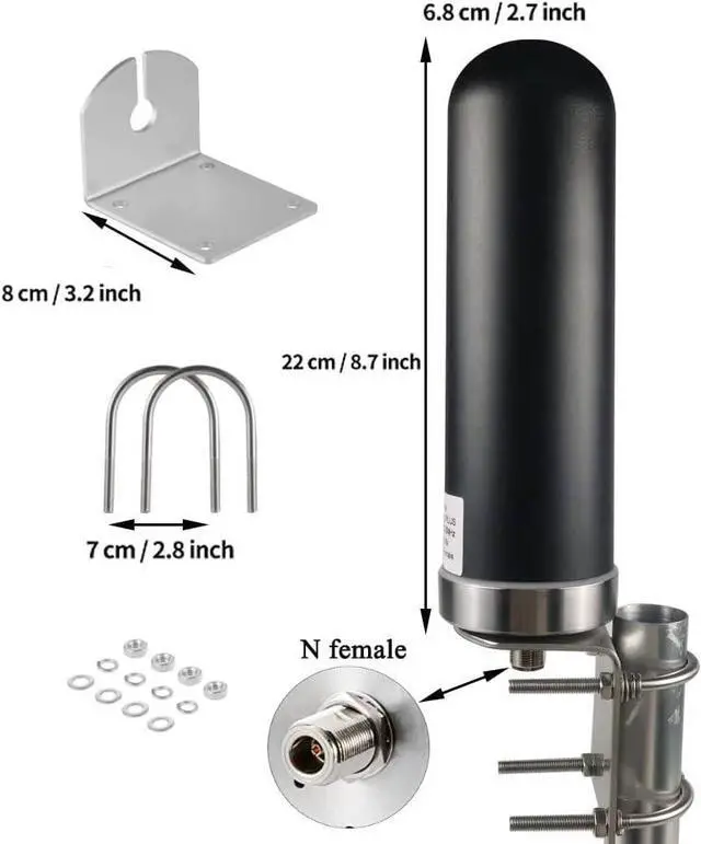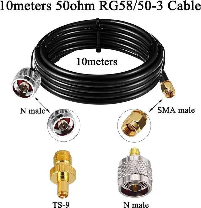 Packing : 1xAntenna &1set hardware (bracket ,u-bolts, nuts,) &10meters RG58/50-3 Cable(N male to SMA male ) &TS-9 adapter &N male adapter .