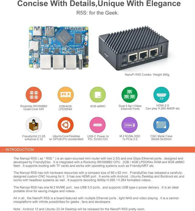[Open Source and Programmable] It can support FriendlyWrt, a custom system based on the OpenWrt distribution. It is open source and ideal for developing IoT applications, NAS applications, smart home gateways, and more