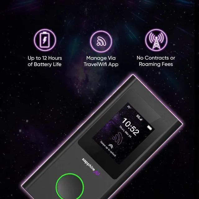 ULTRA-FAST 5G HOTSPOT - Experience boundless, high-speed 5G internet with TravelWifi Sapphire 5G Portable Hotspot. A backward-compatible Wi-Fi hotspot device that provides blazing internet speed to your devices even in the absence of 5G network