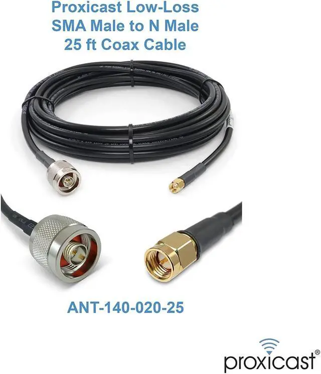 1x Proxicast 25 ft Low-Loss Coax Extension Cable - SMA Male to N Male
