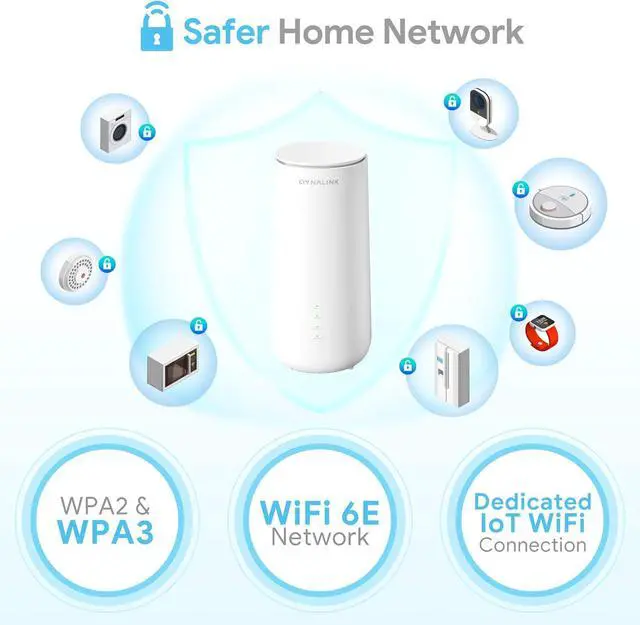 WHOLE HOME WIFI COVERAGE: Triple mesh WiFi system with 8 interl antennas provides a strong Wi-Fi signal to every corner of your home up to 6,000 sq. Maximum capacity: Dynalink Mesh DL-WME38 WiFi system, offering a total of 10 WiFi streams via 6GHz, 5GHz and 2.4GHz spectra. It not only connects to the latest WiFi 6E devices, but also provides the dedicated Wi-Fi IOT connection. Maximum capacity of up to 200+ devices covers all your smart home needs.