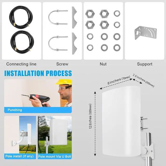 Professional Installation Guide: 1. Test outdoor RSRP: a) Android: Use apps like Network Cell Info Lite or LTE Discovery. b) iOS: Dial 3001#12345#; 2.Confirm router compatibility (connector type and model numbers). 3. More custom antenna solutions to fix weak signals get from Maswell