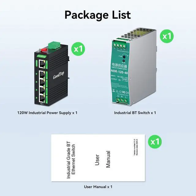 Power Supply: It includes a 48V 120W industrial-grade power supply and also supports DIN-Rail installation.