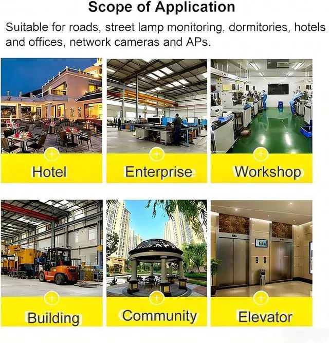 : Standard POE supply in RV/Vehicle/Truck/Bus (DC12V input), VoIP/Access control systems (DC24V input), solar power system (DC12V/DC18V/DC36V input).