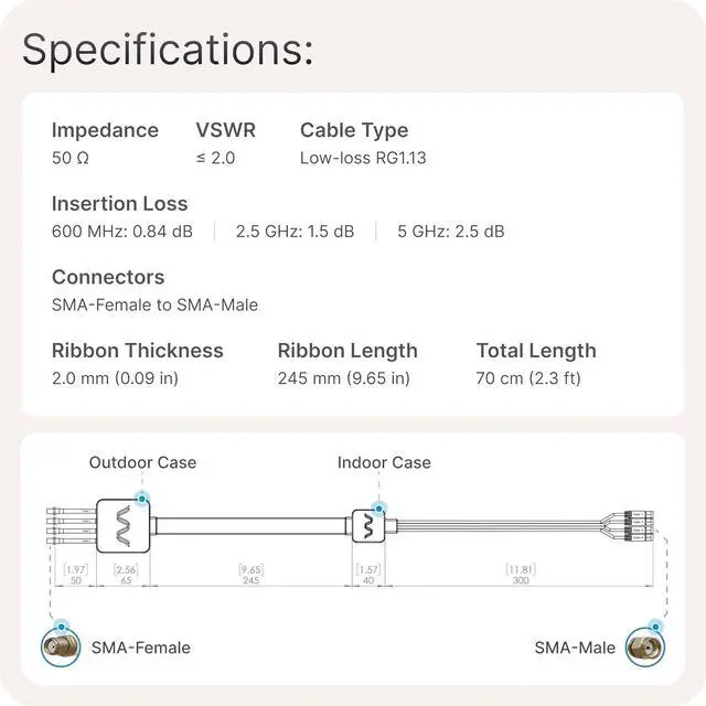 BUILT-IN WEATHERPROOFING: UltraFlex-Quad comes equipped with integrated waterproofing boots on the SMA-Male ends, providing protection against the elements. This built-in feature ensures your connections remain secure and dry, and safeguards your system, even under extreme weather conditions.