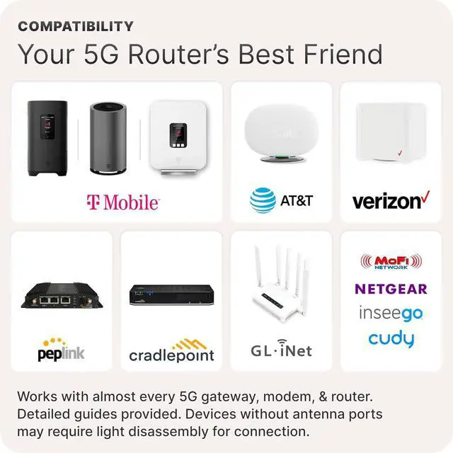 CUTTING-EDGE 4x4 MIMO PERFORMANCE - Want faster data rates, greater reliability, and lower latencies? Your 5G Internet is only as good as your 5G cell signal. Join tens of thousands AT&T, Verizon, and T-Mobile customers who have dramatically improved their Internet connectivity with a Waveform antenna. With full 4x4 MIMO support and up to 9.1 dBi gain from 600 to 6000 MHz, the Waveform QuadPro supports every 4G and 5G band from every carrier, including AT&T, Verizon, T-Mobile, and US Cellular.