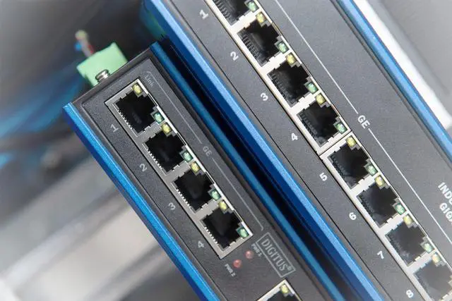 With the help of the integrated clamp for profile rail installation, the industrial switch can be mounted on a standard DIN rail in switch boxes or switch cabinets