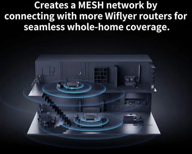 MeshMesh allows 2 or more Wiflyer routers to work together to cover your whole house. Switch seamlessly between WiFi signals of mesh routers. No need to reconnect or manual switching.Please reset the mesh button on the router if you can not change and save the wifi password or other information on our OS system.