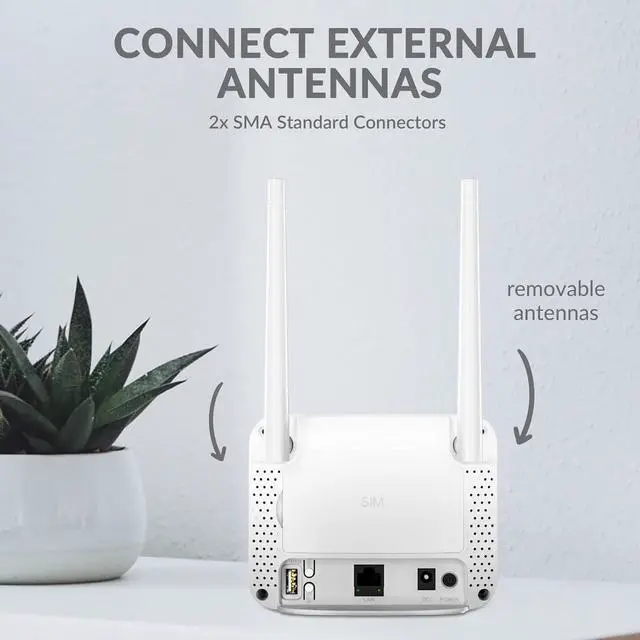 LTE router with dual antenna for optimal connection - This LTE router has two external, highly amplified 4G antennas for strong and stable reception. The included SIM card adapter supports all common formats in the EU, so you can use your router SIM card flexibly.