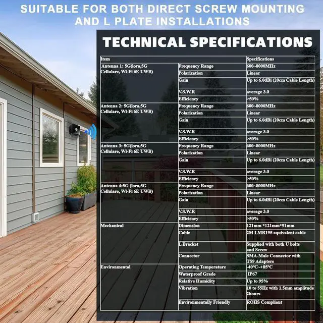Gain:Up to 6.0 dBi (20cm Cable Length)