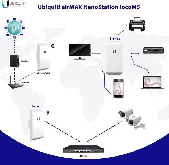 Experience the ultimate in wireless connectivity with the LOCOM5 Wireless Bridge. Pre-configured for your convenience, this high-performance device offers a powerful 5GHz connection with speeds exceeding 150 Mbps, ensuring fast and reliable data transmission for your network needs. The LOCOM5 is pre-configured for easy plug-and-play setup, allowing you to quickly establish a robust wireless link without the hassle of complex configurations. Its advanced technology provides excellent noise immunity and long-range capabilities, making it ideal for various applications, including point-to-point and point-to-multipoint configurations. Built to withstand harsh outdoor environments, features a durable, weather-resistant design. Whether you're extending your network across buildings, connecting remote locations, or providing wireless internet access to a large area, the LOCOM5 delivers exceptional performance and reliability. This comprehensive package includes 2 Paired LOCOM5 devices, 2 POE Injectors with power cords, 2 Straps, and an easy-to-follow Installation guide.