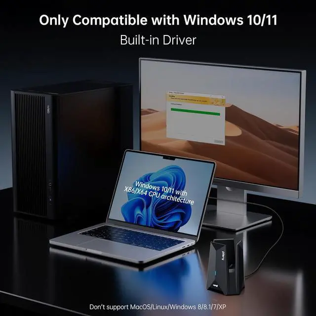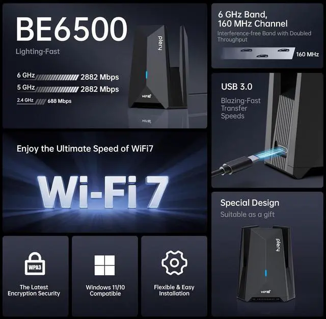Built-in Drivers & Easy Installation Enjoy a seamless setup process with built-in drivers, allowing for easy installation without the need to download additional software. The USB WiFi 7 adapter is perfectly compatible with Windows 11/10.