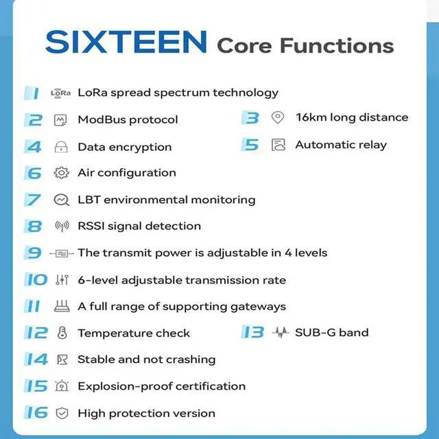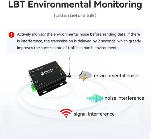 Supports LBT function, the station transmits automatically according to the current ambient noise intensity. Significantly Support wireless transmission of command packets, remote configuration or readout of wireless module parameters; support communication key function and effectively prevent data interception;