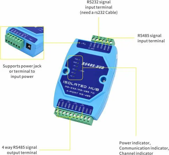 Product Name: RS232/RS485 to 4 ports RS485 repeater / hub