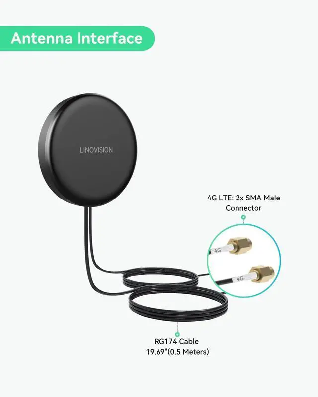 2-in-1 COMBO ANTENNA - Combines 2x 4G LTE MIMO in one, ideal for enhancing cellular signals; Each RG174 Cable length 50cm (19.69inch)