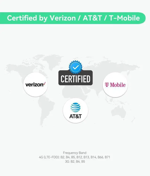 CERTIFIED BY VERIZON/AT&T/T-MOBILE - Reliable 3G/4G LTE Cat4 wireless connectivity compatible with major US carriers and officially certified by Verizon, AT&T, and T-Mobile.