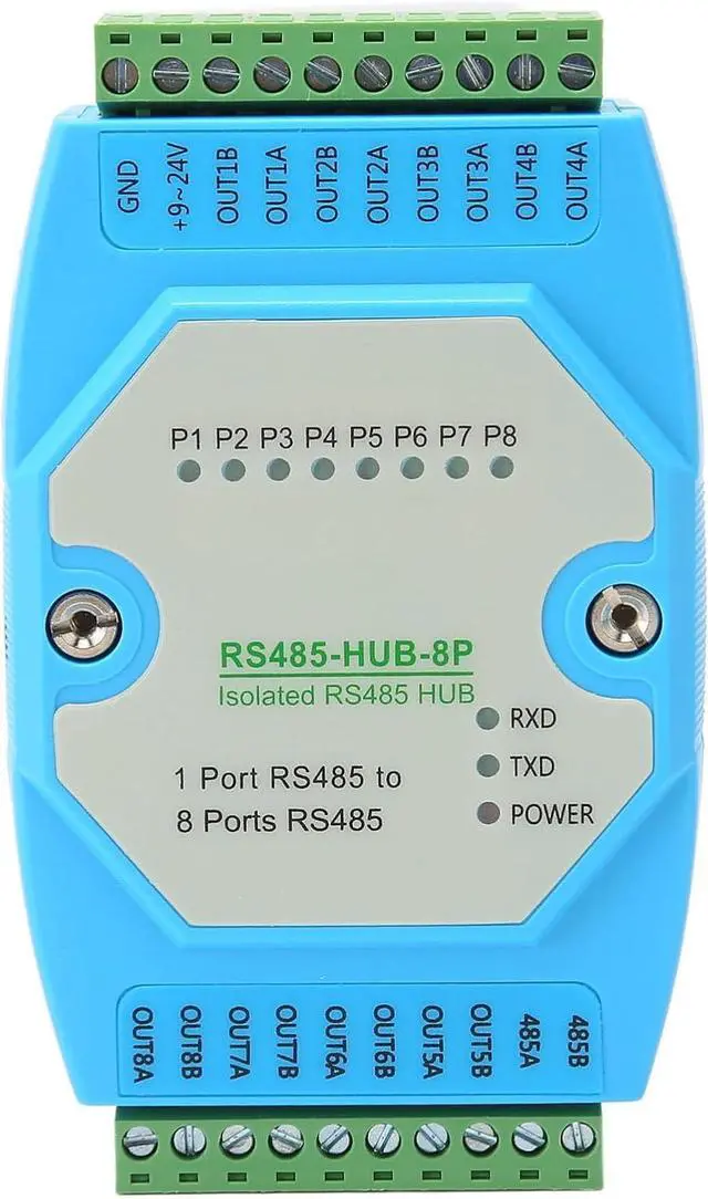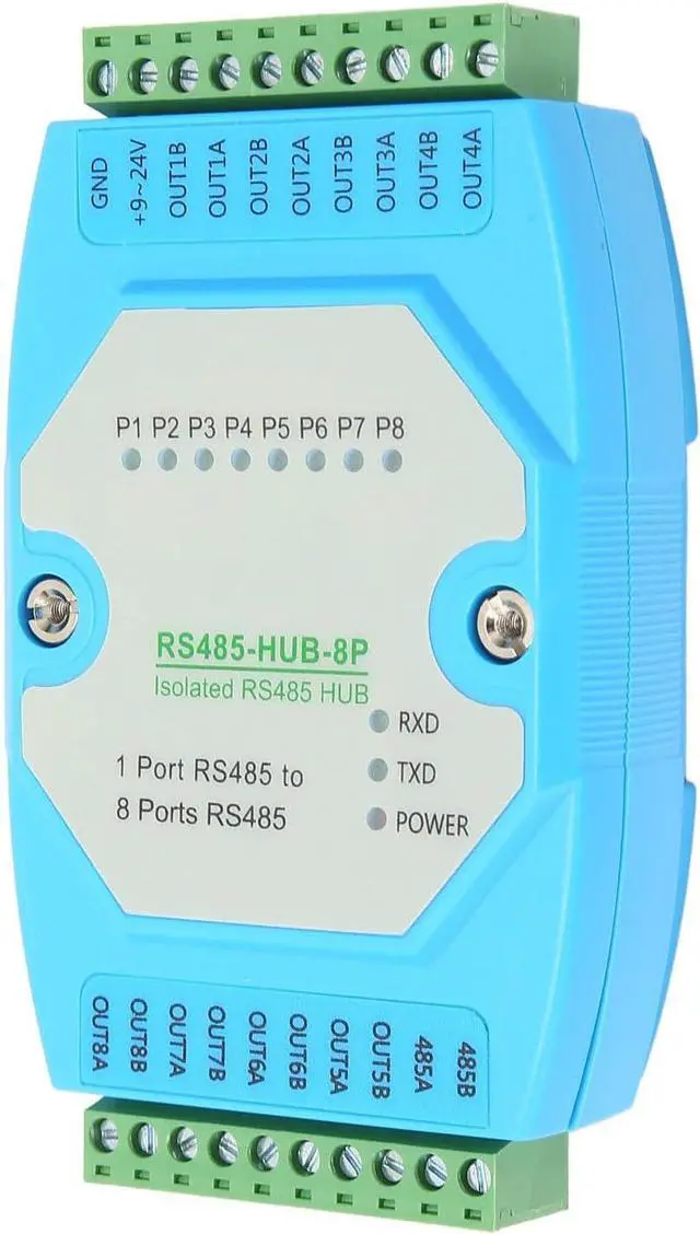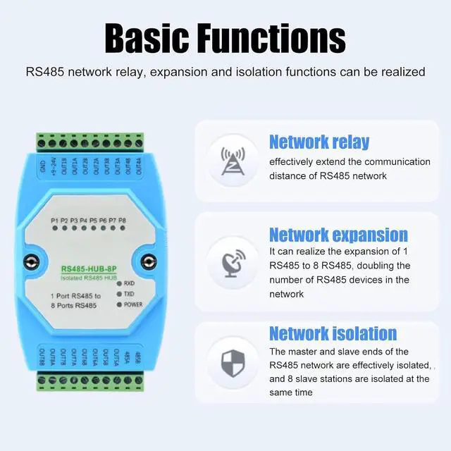 Industrial Grade: This RS485 Hub adopts industrial grade, which can be expanded from 1 master RS485 port to 8 slave RS485 ports to realize RS485 network relay, expansion and isolation functions.