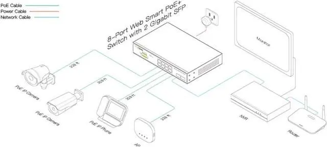 Small-to-Medium Scale PoE+ Network Setup: Provide 8 x 10/100/1000 Mbps PoE+ ports for homes or businesses to build PoE networking systems efficiently, suit various IP devices, such as IP cameras, VoIP phones, etc