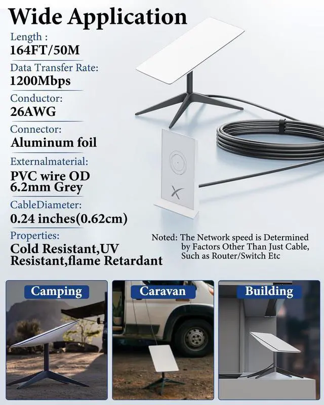 All Weather Use Our cable is weatherproof, flexible and resistant to aging. It is also UV resistant, flame retardant, and externally waterproof to withstand rain and snow, ensuring uninterrupted internet access in all conditions. It is durable and suitable for both indoor and outdoor use, ensuring a stable connection and efficient data transfer in a variety of environmental conditions.