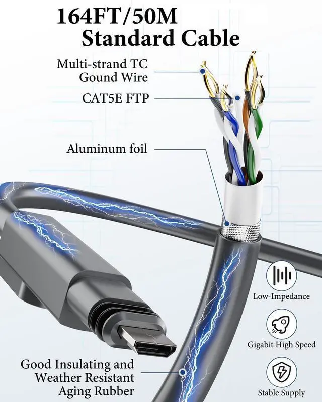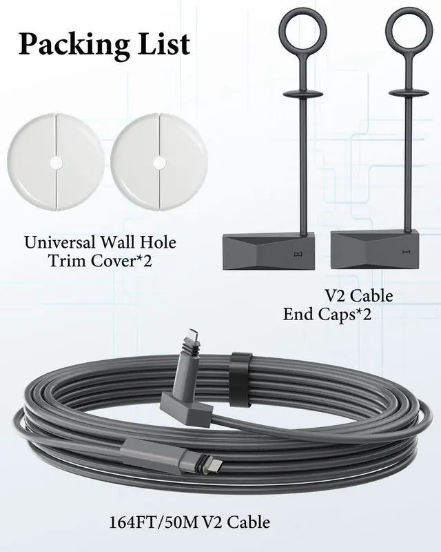 Protective End Caps & Decorative Caps For Wall CavitiesCable size is: 164FT/50M, which can meet various needs and environments. Each cable comes with two protective end caps and four hole-in-the-wall decorative covers that protect the top of the connector from dust, moisture and potential physical damage, thus extending the life of the cable.