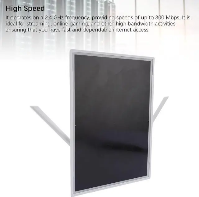 High Speed: It operates on a 2.4 GHz frequency, providing speeds of up to 300 Mbps. It is ideal for streaming, online gaming, and other high bandwidth activities, ensuring that you have fast and dependable internet access.