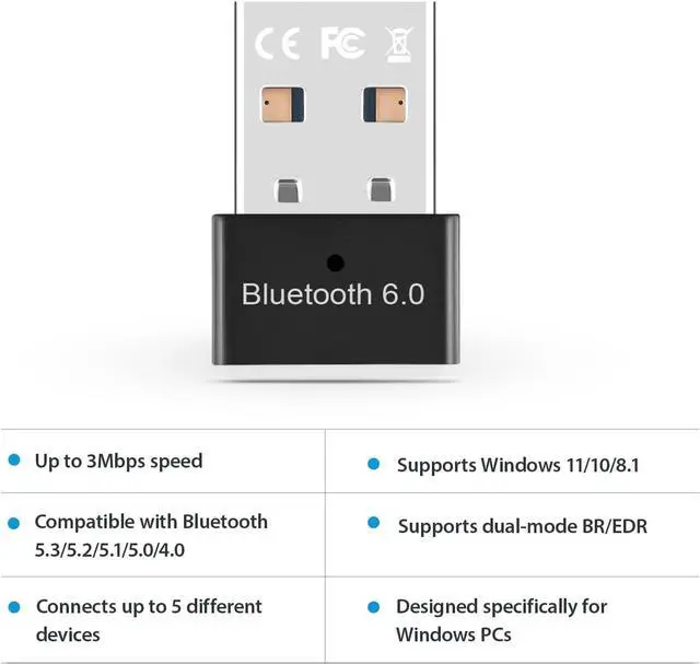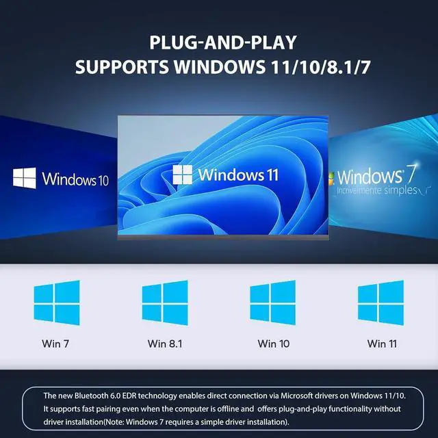 Plug-and-Play: This Bluetooth dongle supports Windows 11/10/8.1/7 and utilizes the latest Bluetooth 6.0 EDR technology. On Windows 11/10, it can be used directly with Microsoft drivers, enabling quick connection even without an internet connection. It achieves plug-and-play functionality without requiring driver installation. (Note: Windows 7 requires a simple driver installation.) Features automatic memory functionalityonce paired, devices will reconnect automatically after restarting, saving time and effort.