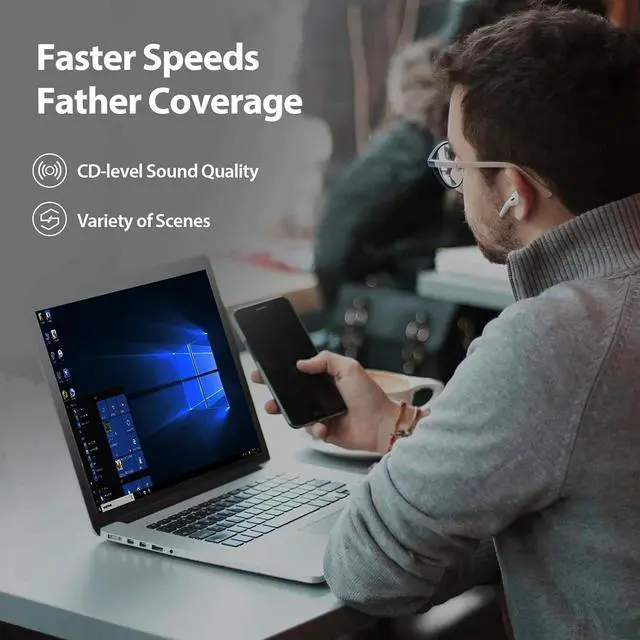 Ultra-high-speed data transfer, up to 3Mbps: This Bluetooth adapter for PC supports dual-mode BR/EDR and utilizes advanced EDR (Enhanced Data Rate) technology to deliver 3Mbps operating speeds. This significantly reduces file transfer wait times and effectively minimizes audio and video streaming stuttering and latency. Fully backward compatible, it maintains stable connections with legacy Bluetooth devices while supporting Bluetooth 5.3/5.2/5.1/5.0/4.0.