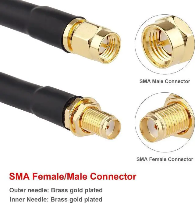 SMA Connectors: The cable has SMA-Male and SMA-Female connectors, which are standard for many antenna and equipment setups. SMA connectors are known for their durability and reliable connection.