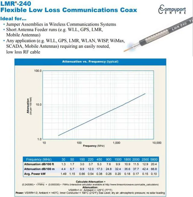 Low-Loss LMR-240: The LMR-240 designation means that the cable is designed to minimize signal loss over longer distances. This is particularly important in maintaining signal integrity for high-frequency signals like those used in cellular communication.