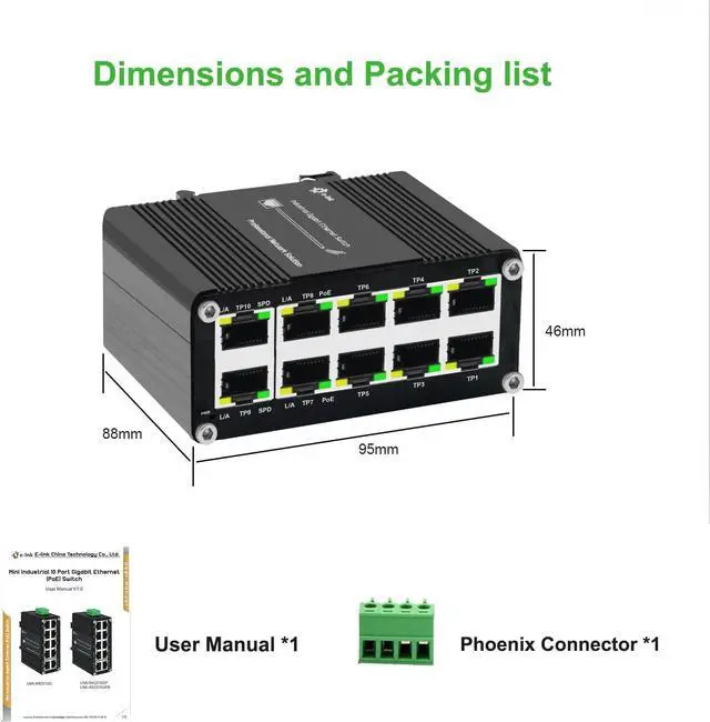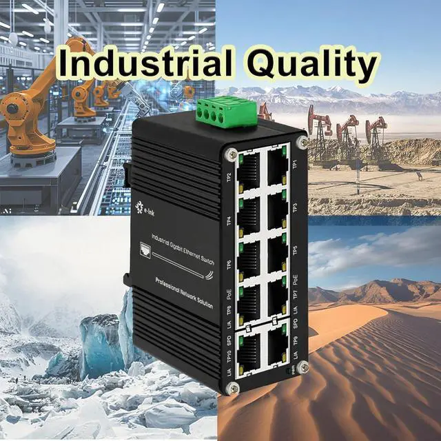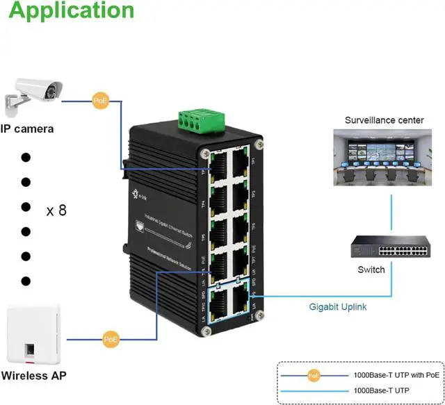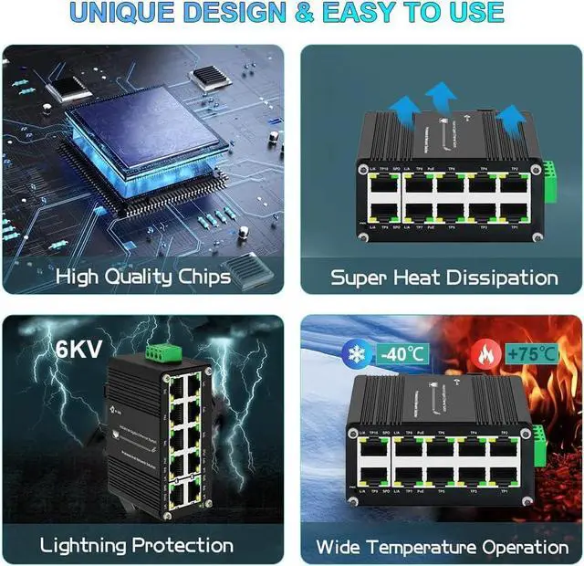 Supports DIN-Rail installation- The gigabit 10 ports switch with industrial grade aluminum alloy housing comes with 35mm din-rail mounting bracket and can install on universal din rail slot. Installation and disassembly are very simple.