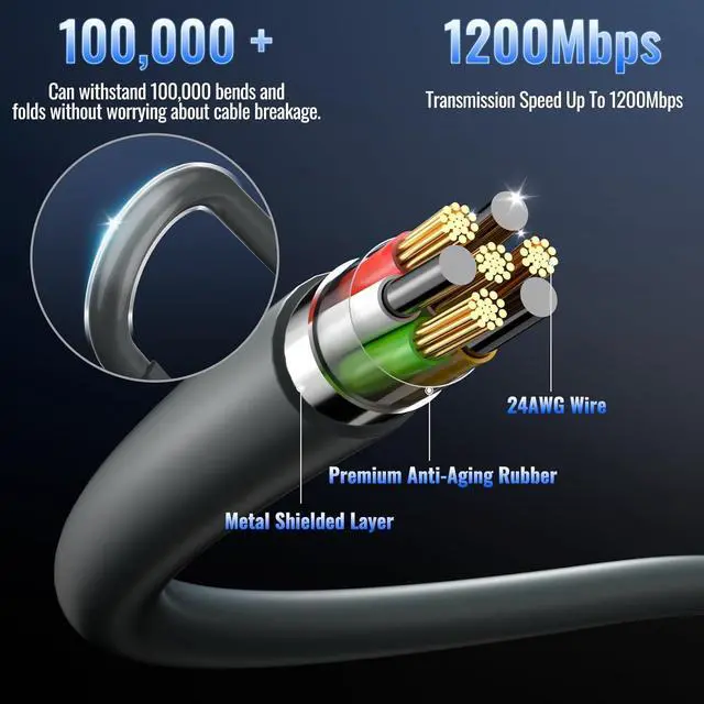 Outstanding Performance and DurabilityAchieving data transfer rates up to 1200Mbps, this cable for Starlink is designed with a metal shielding layer and 24AWG wire to maintain signal quality. The premium anti-aging rubber ensures that it can endure more than 100,000 bends and folds without damage, offering a dependable, long-lasting connection for your Starlink Gen 2 setup.
