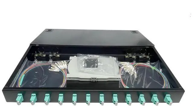 Package IncludedBlack mount,24 pcs pigtails,12 pcs LC/OM3 multimode coupler.