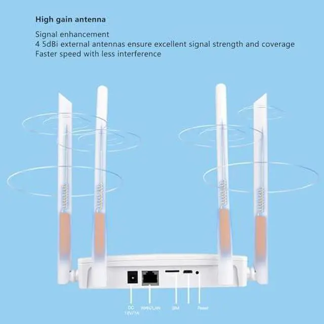 **Enhanced Quality and Reach:** Our router comes equipped 4x5dBi high gain antennas that amplify sensitivity, drastically improving 4G LTE and quality. This ensures seamless connectivity even over extended ranges.