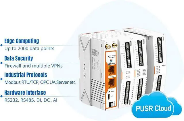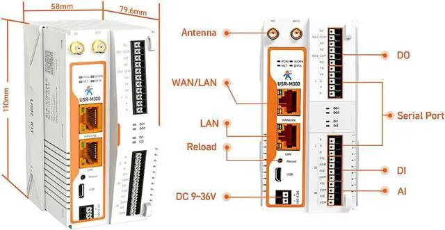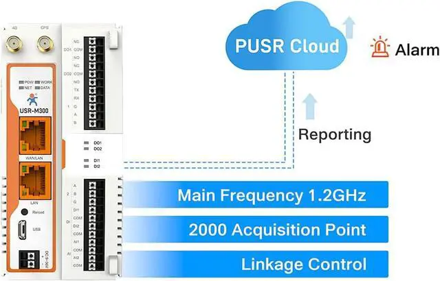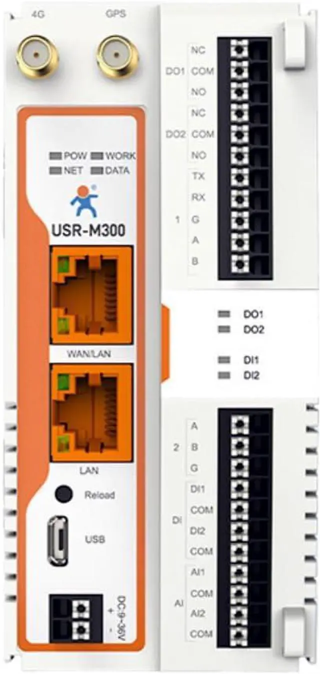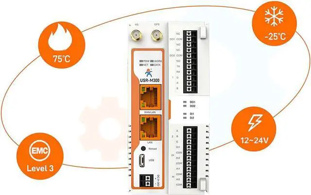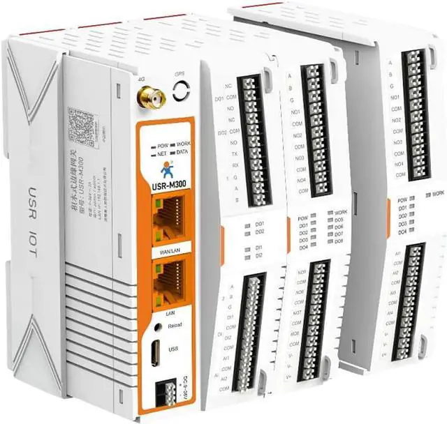 The USR-M300 is an industrial-grade edge computing IoT device with modular design, so users can expand IO as needed. This device comes with powerful edge computing capabilities, which can reduce cloud-end computing resources, and reoport data to Cloud platform actively. It can access the Internet via Ethernet port, ADSL and LTE cat4 cellular network to achieve easy network deployment.
