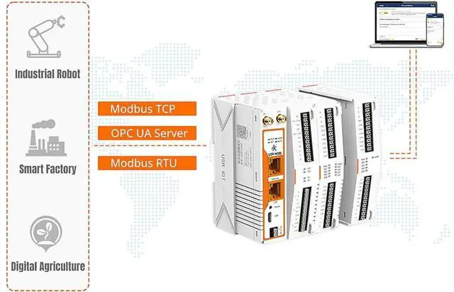 Modbus Gateway Suitable for a variety of industrial IoT scenarios, supporting Modbus RTU/TCP protocol conversion and other popular PLC common protocols.