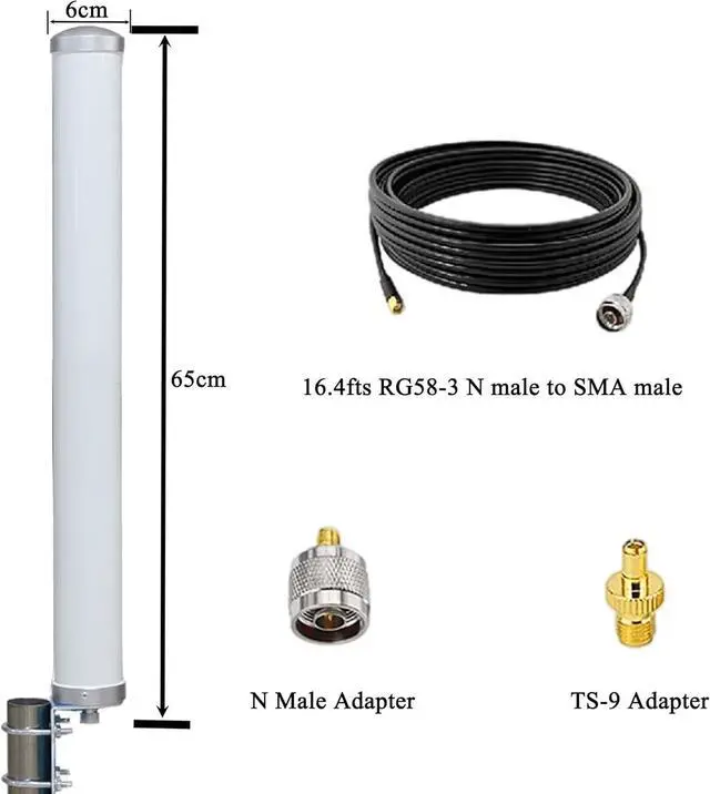 Package Contents: The package includes one high-gain 28dBi wide-band outdoor antenna, a 10-meters (32.8 feet) RG58 coaxial cable (N male to SMA male), TS-9 adapter, N male adapter, and a set of U-clip codes. Experience improved wireless connectivity and enjoy a seamless browsing, streaming, and gaming experience.