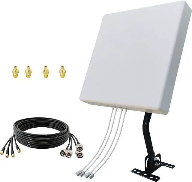 Full Kit: The Package Include an 4x 4 MIMO Antenna, a J-Mount Pole, Four 10 Meter RG58 Wires with SMA Connectors, Four TS-9 Adapters.