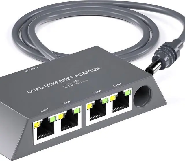 Fast Speed Easy Setup for Networks with 4 Port Gigabit Ethernet Splitter Adapter Cord