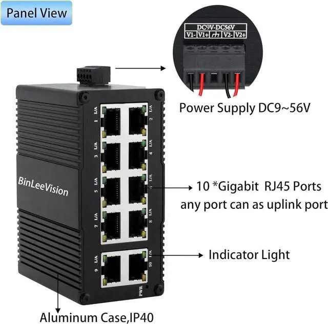 POWER SUPPLY: Wide voltage range from DC 9V to 56V(PoE:DC 44V~56V) makes it suitable for various industrial applications and environments,Support power overload protection,energy efficient