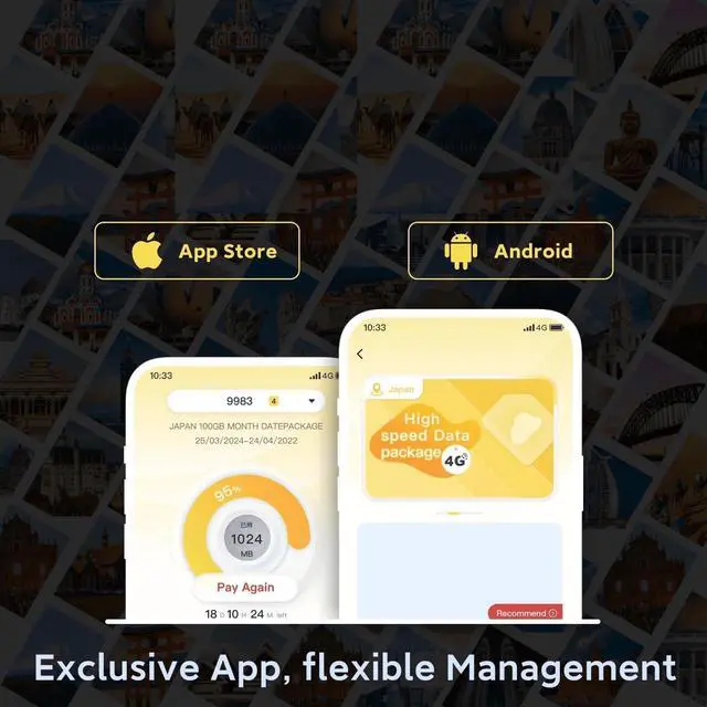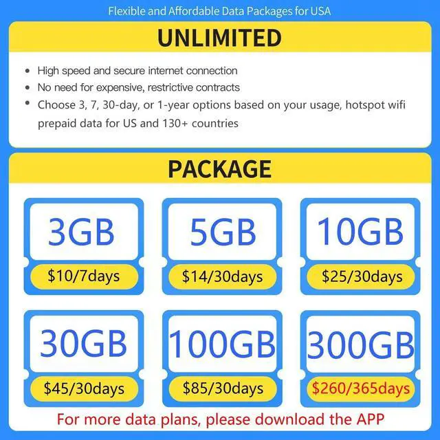 Choose 3, 7, 30-day, or 1-year options based on your usage, hotspot wifi prepaid data for US and 130+ countries